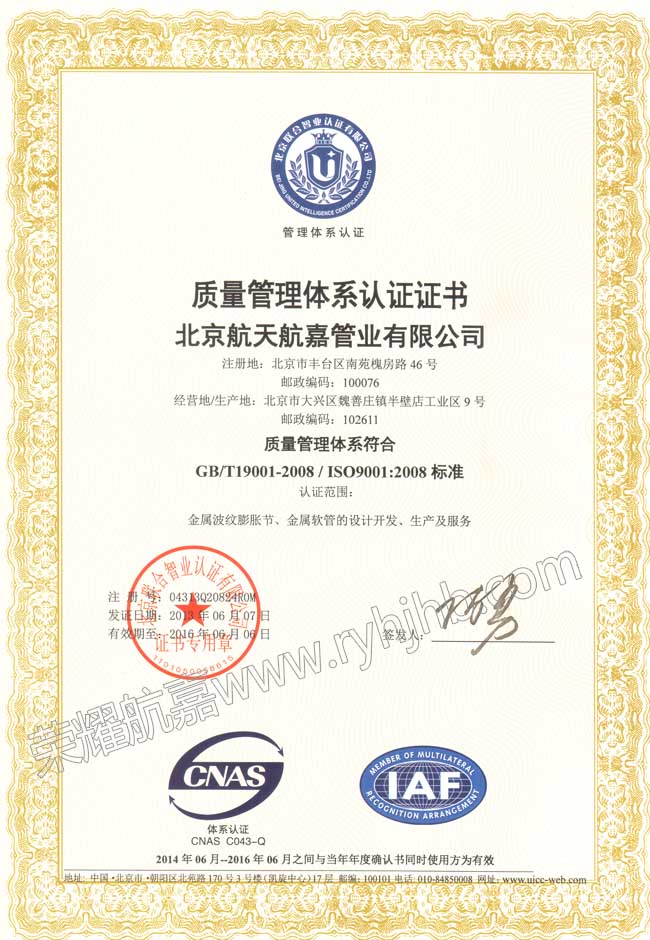 你的位置:首页 > 公司荣誉 > 质量认证